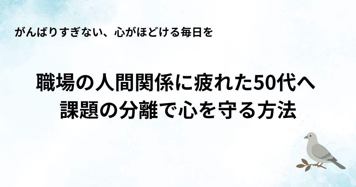 会社の人間関係がつらいときに心を軽くするシンプルな考え方 2025.08.18 職場での心の悩みと対処法 なお 気持ちがラクになる50代ライフ 職場の人間関係に疲れた50代へ ― 課題の分離で心を守る方法 2025.08.18 職場での心の悩みと対処法 なお 気持ちがラクになる50代ライフ 会社に行きたくないが少し楽になる考え方 2025.08.18 職場での心の悩みと対処法 なお 気持ちがラクになる50代ライフ 50代が抱えるストレスと、心をラクにする小さなヒント 2025.08.17 未分類 なお 気持ちがラクになる50代ライフ もっと見る